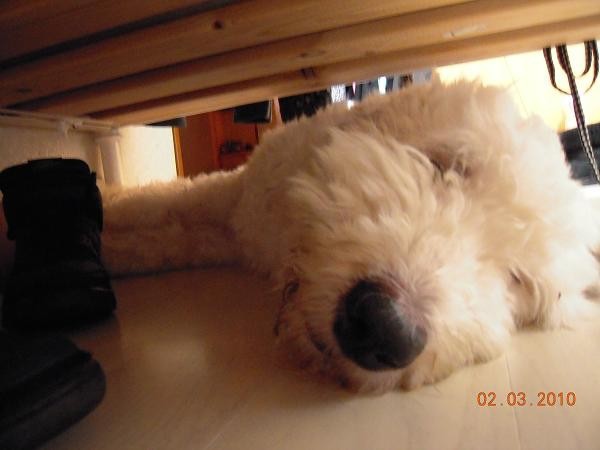 皮皮躺進我的床底下
